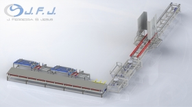 Linha de pregagem de paletes semi-automática JFJ Semiautomatic pallet nailing line JFJ Ligne de clouage des palettes semi-automatique JFJ